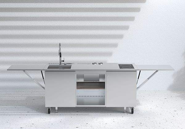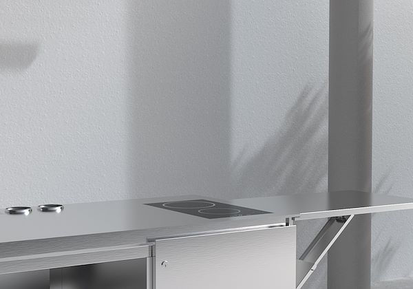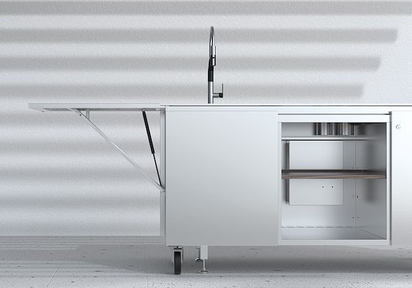 Compartiment avec étagère en HPL / acier inoxydable