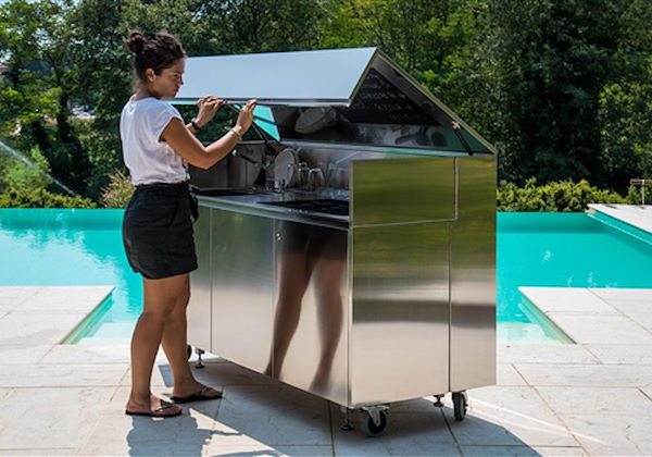 Compartiment avec étagère en HPL / acier inoxydable