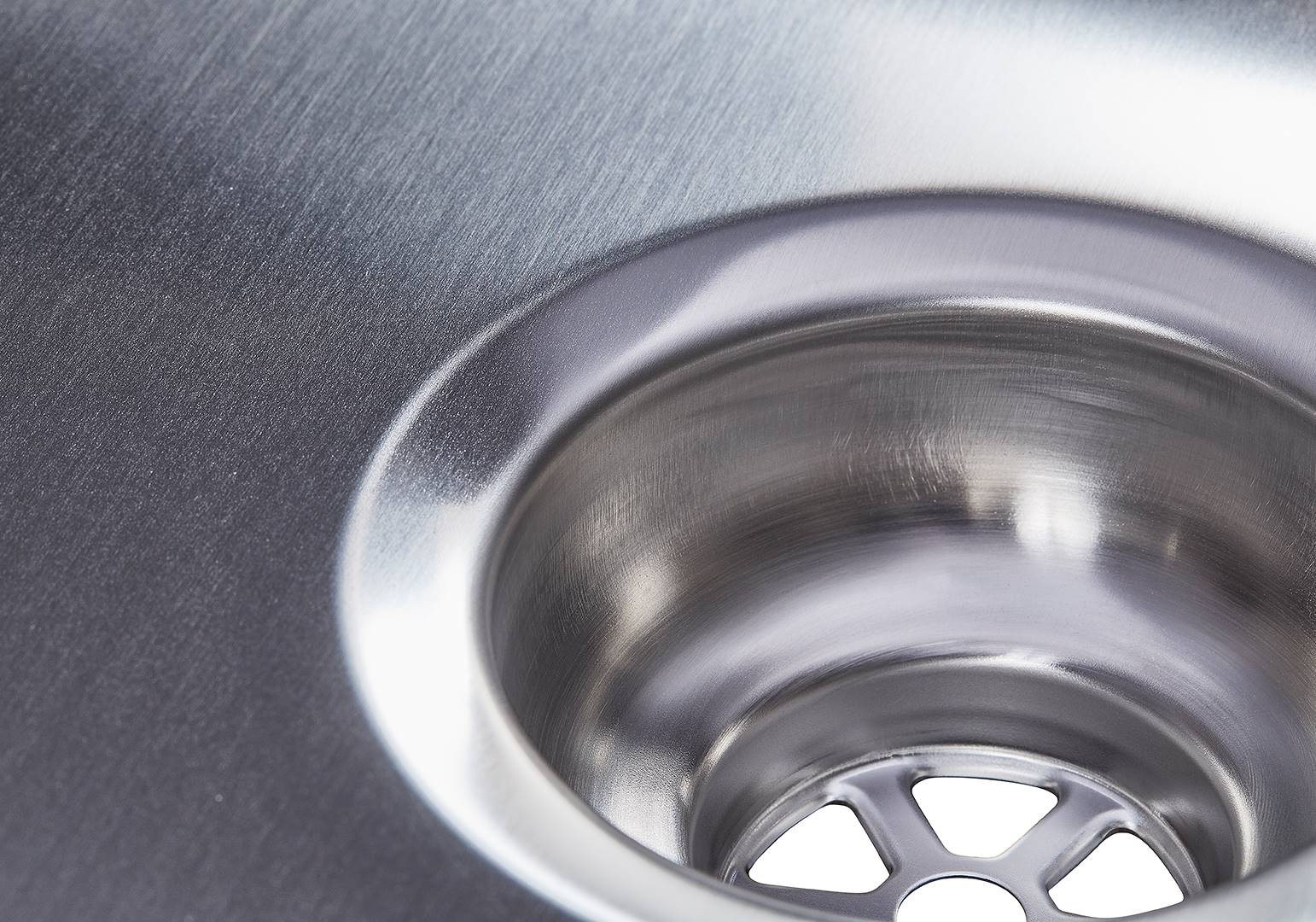 Acier de 1 mm d'épaisseur. Une épaisseur importante qui garantit une résistance maximale pour les éviers qui ne connaissent pas les signes du temps.